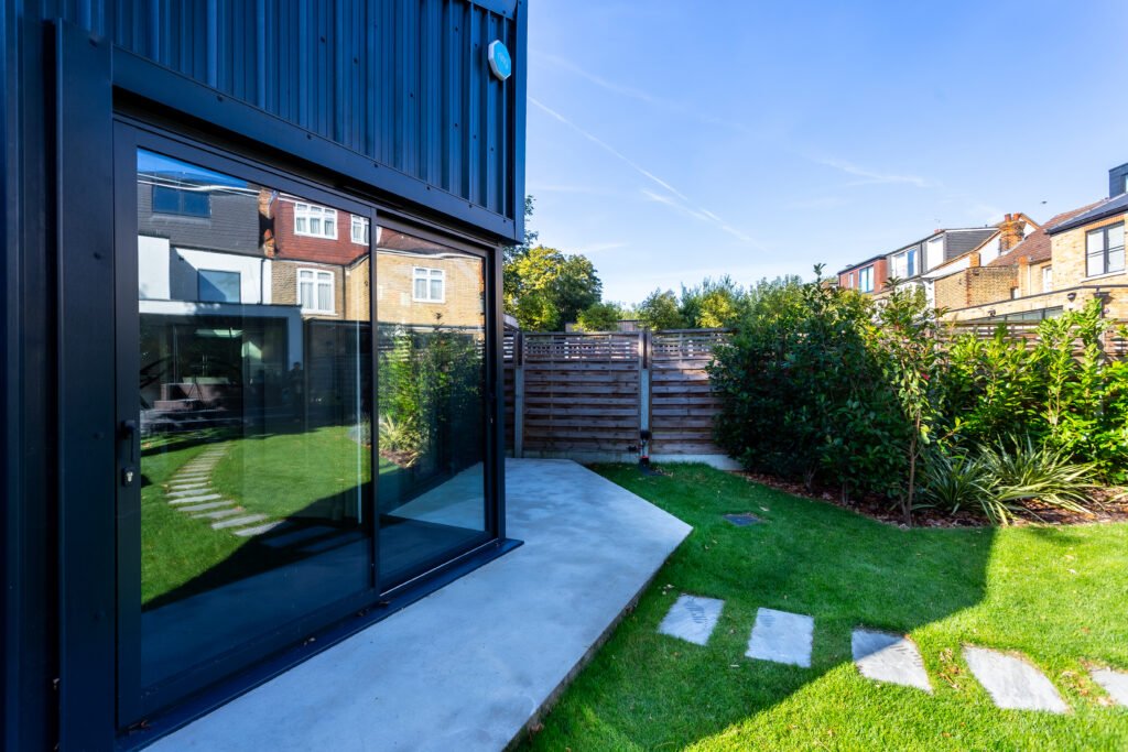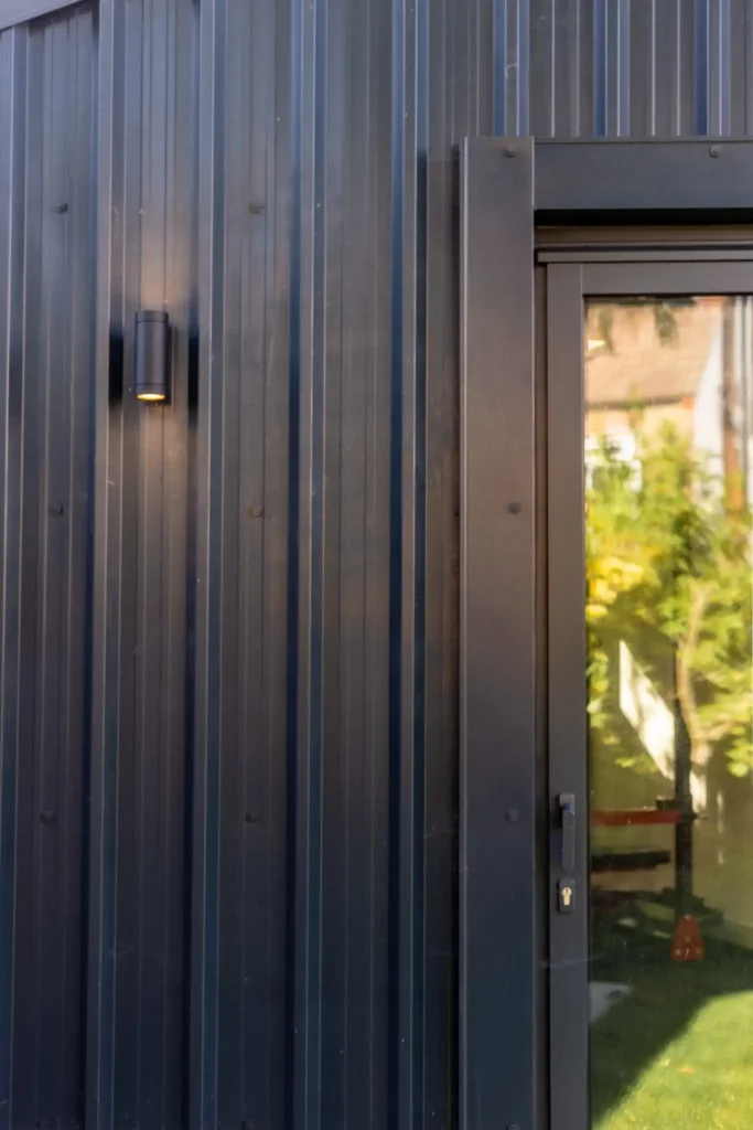 The final result was an industrial style building with a corrugated metal “skin”, which emphasised the verticality of the internal panels and slats details in the house. The structure echoed the zinc accents of the rear façade and the sliding doors, creating a unified aesthetic.