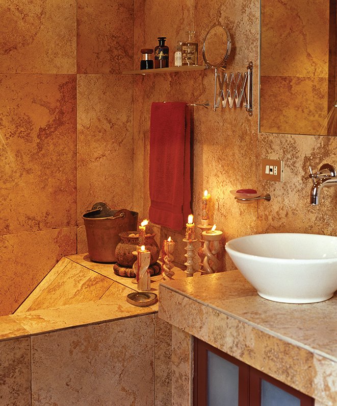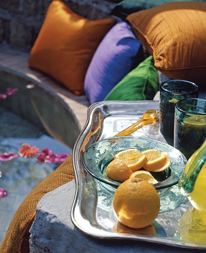 Each room has a different colour. From vivid vermilion at the entrance, softening to ochre, teals and greens, tones reflect each space’s theme and function, ending in gentle blues for the bedrooms.